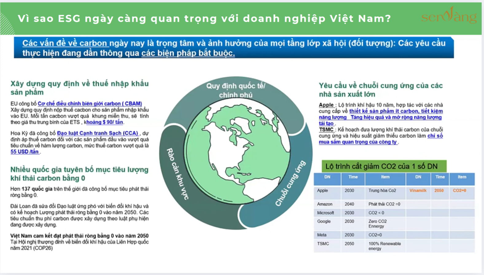Yêu cầu từ các đối tác trong chuỗi cung ứng toàn cầu và cơ chế CBAM/CCA/CSRD