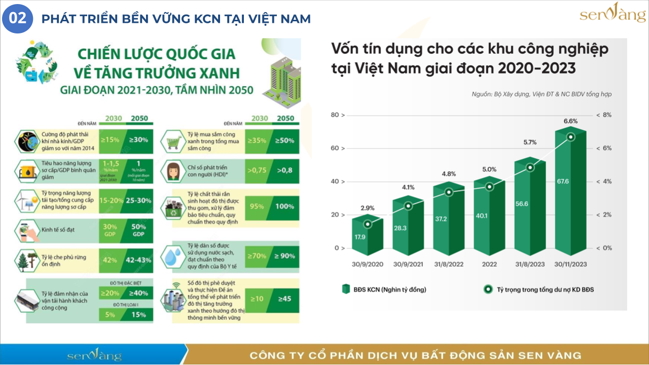 - Phát triển điện mặt trời áp mái, xử lý nước thải đạt chuẩn tế, và logistics xanh để nâng cao chất lượng sản phẩm KCN.