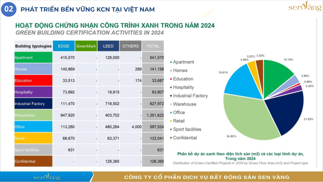 - Thiết kế nhà xưởng đạt chứng nhận LOTUS hoặc LEED, hỗ trợ các doanh nghiệp thuê đất đáp ứng tiêu chuẩn bền vững.