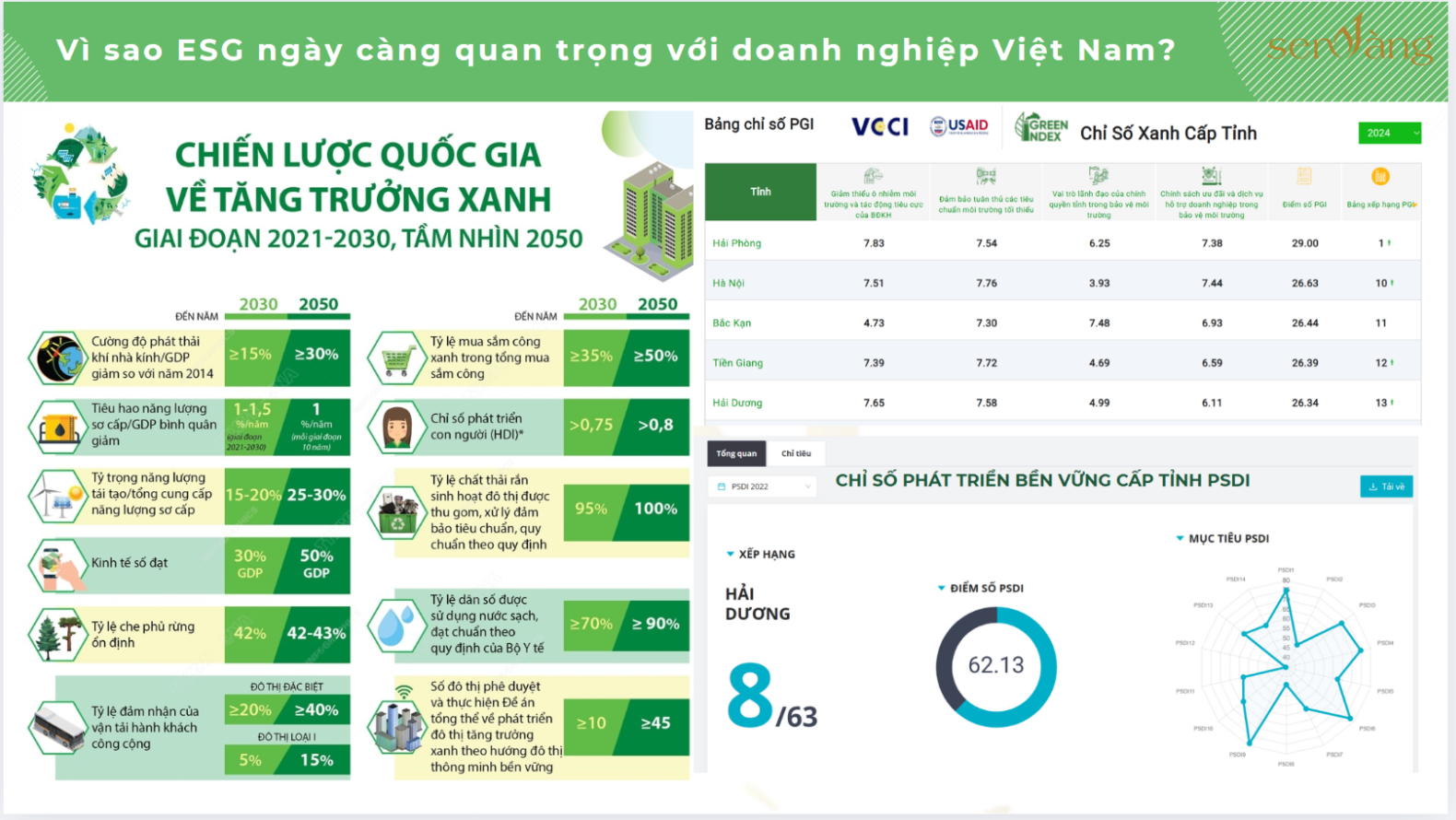 - ESG giúp các chủ đầu tư KCN xây dựng thương hiệu bền vững, tạo sự khác biệt trong thị trường cạnh tranh và thu hút đối tác toàn cầu.