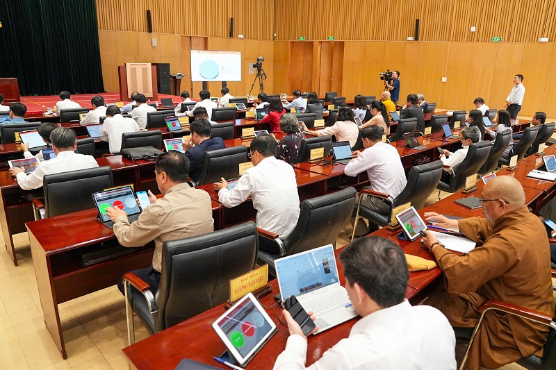 Các đại biểu biểu quyết tại Kỳ họp thứ 31 (chuyên đề) HĐND thành phố khóa XVI.