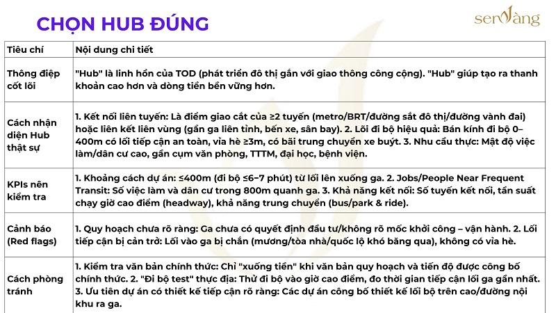 Chọn đúng Hub (Đầu mối): Ưu tiên các ga trung tâm, ga liên kết có kết nối đa tuyến và nhu cầu thực.
