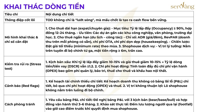 Thông điệp cốt lõi: “TOD không chỉ để lướt sóng, mấu chốt là dòng tiền bền vững (cash flow).”