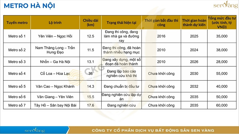 Các tuyến metro đang và sẽ triển khai (Tuyến số 2, Tuyến số 5 Văn Cao – Láng Hòa Lạc).