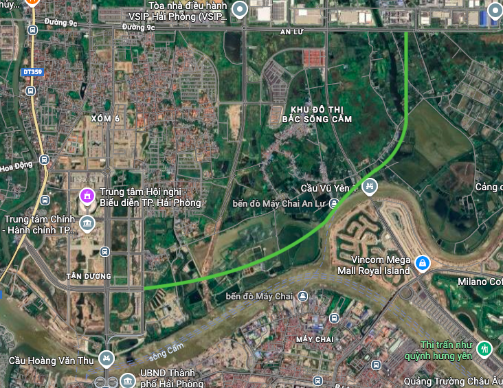 Tuyến đường sẽ mở ở trong phạm vi phường Thuỷ Nguyên trong tương lai theo bản đồ điều chỉnh quy hoạch TP HảI Phòng thời kỳ 2021 - 2030, tầm nhìn đến năm 2050.