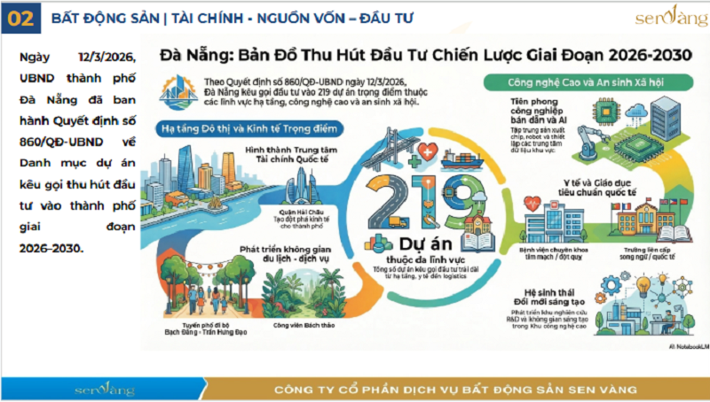 Đà Nẵng: Kêu gọi đầu tư 219 dự án thuộc nhiều lĩnh vực (hạ tầng, y tế, logistics, AI, bán dẫn).