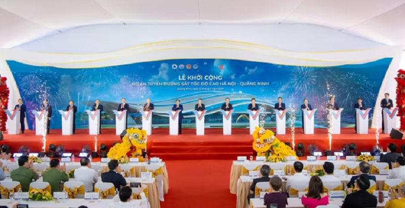 Sáng nay (12/4), Công ty Cổ phần Đầu tư và Phát triển Đường sắt Cao tốc VinSpeed thuộc Tập đoàn Vingroup, cùng các địa phương đã chính thức khởi công tuyến đường sắt tốc độ cao Hà Nội - Quảng Ninh tại tỉnh Quảng Ninh. Sự kiện có sự hiện diện của Thủ tướng Lê Minh Hưng, nguyên Thủ tướng Phạm Minh Chính và lãnh đạo các bộ, ngành, địa phương.